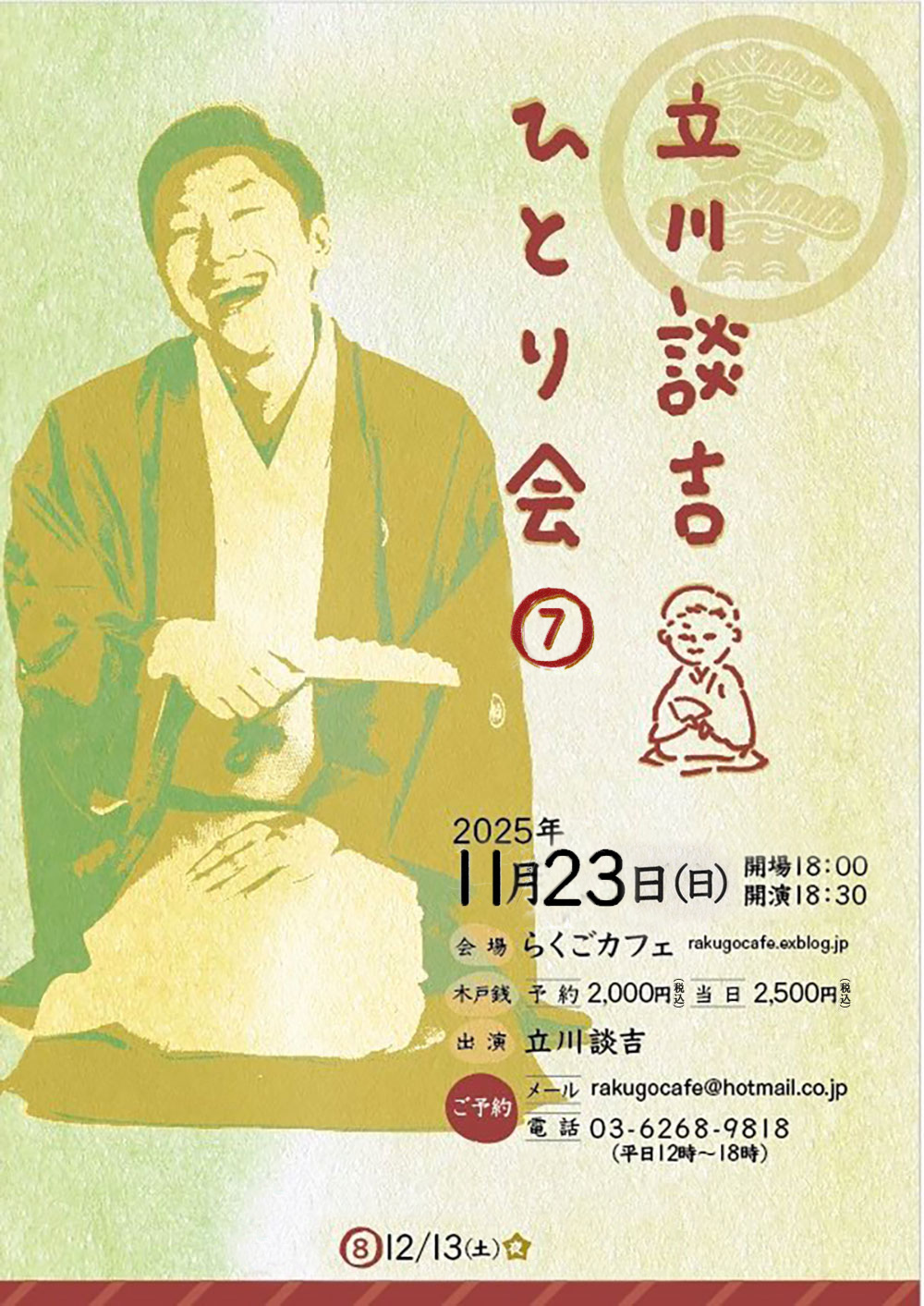 [出演]立川のの一,立川笑王丸(祝・二つ目昇進),立川かしめ,ユリオカ超特Q,立川談修(仲),冷蔵庫マン,立川談吉,立川志ら乃
